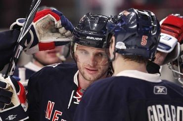 Góly : 37. Callahan (Anisimov), 43. Prospal (Zuccarello, GÁBORÍK) - 2. Kovaľčuk (Zubrus), 29. Zubrus (Tallinder), 36. Rolston (Eliáš). Vylúčení : 3:6 na 2 min, navyše : Avery - Clarkson obaja na 5 min za bitku, presilovky : 1:0, oslabenia : 0:0. Strely na bránku : 27:18, brankári : Lundqvist (36. Biron) - Martin Brodeur. Diváci : 18 200.