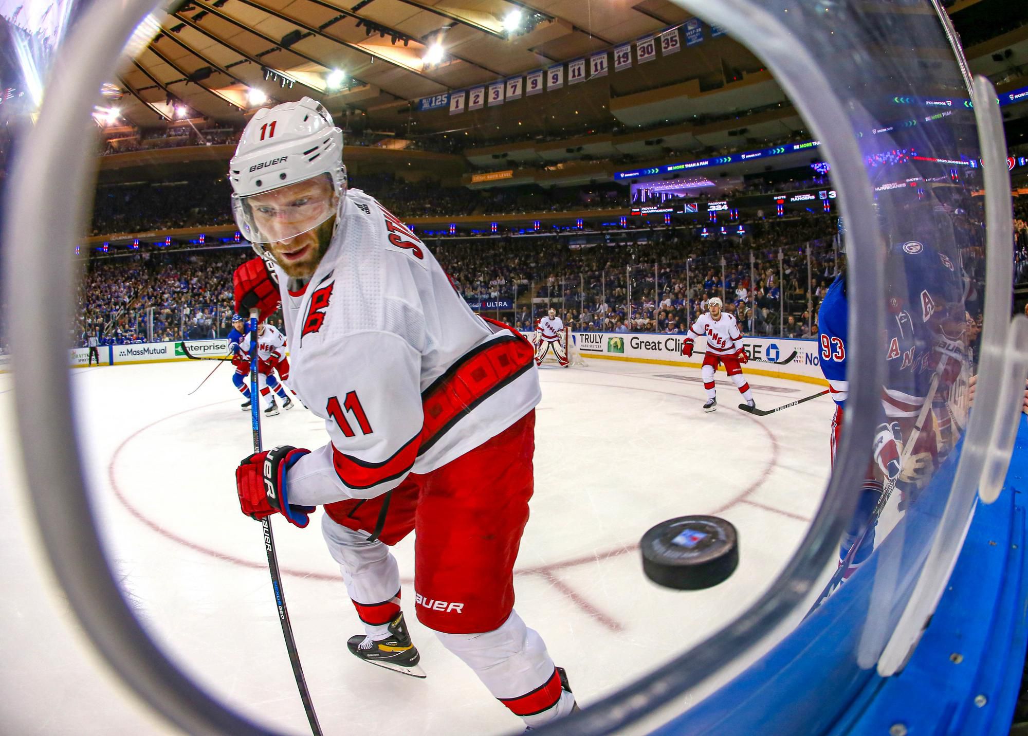 "Prišli sme sem vyhrať aspoň jeden zápas. Sme smutní, že to nevyšlo, ale séria pokračuje," povedal kapitán Caroliny Jordan Staal. Hurricanes nevyhrali v tohtoročnej play off ani jeden zápas "vonku", v prvom kole sa stretli s Bostonom Bruins. Na ľadoch súperov majú bilanciu 0-5 so skóre 8:21. Naopak, doma vyhrali všetkých šesť duelov. "Vypracovali sme si dosť šancí, čo ma teší, ale Šesťorkin bol skvelý," dodal kormidelník "hurikánov" Rod Brind’Amour. Rangers vyhrali doma päť zápasov v play off za sebou a vyrovnali rekord z roku 1994, keď získali Stanley Cup.