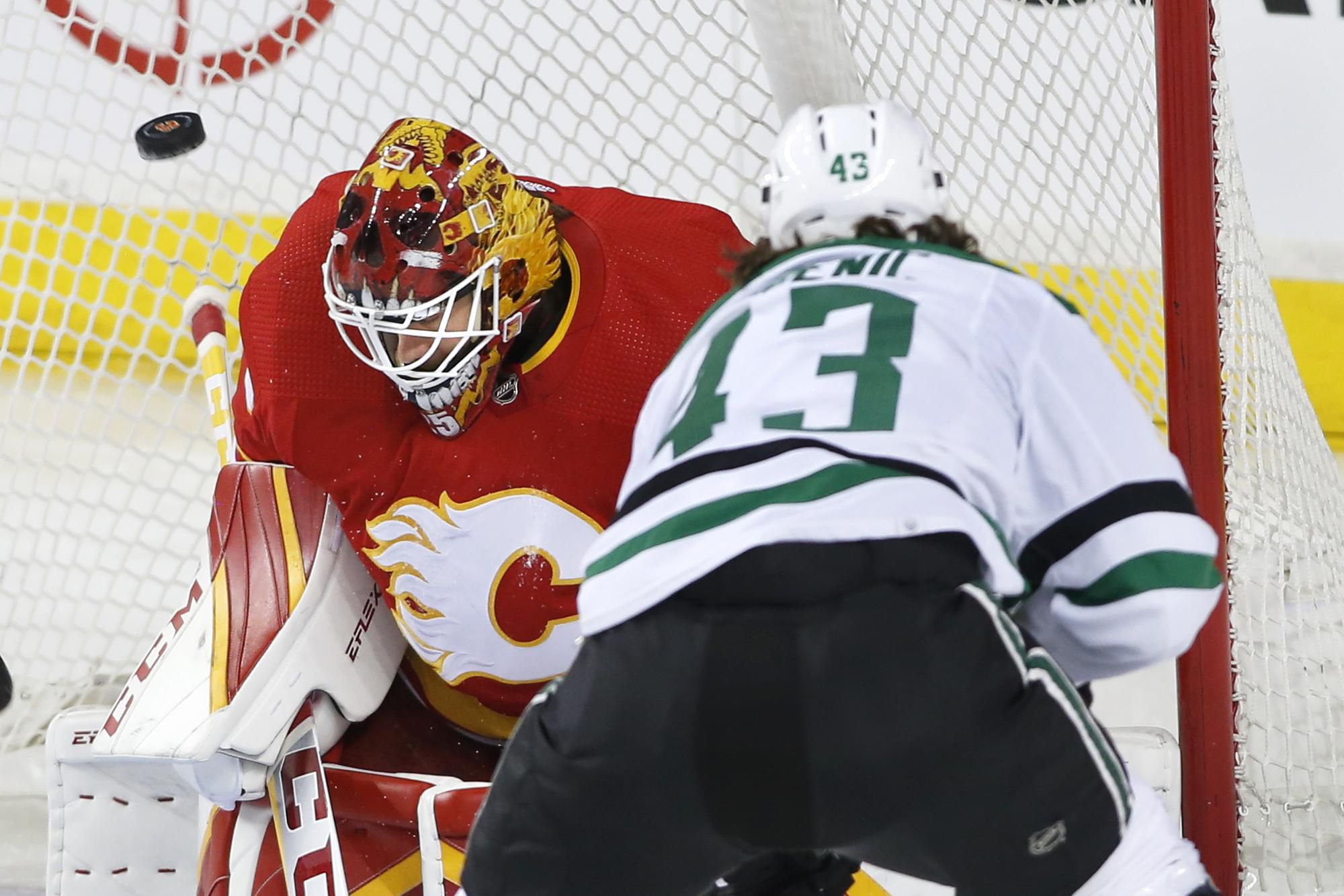 Skóre otočilo aj Calgary, ktoré zdolalo Dallas 3:1. Do 47. minúty prehrávalo po góle Jasona Robertsona, pre ktorého to bola gólová premiéra v play-off. V základnej časti zaknihoval 41 presných zásahov.