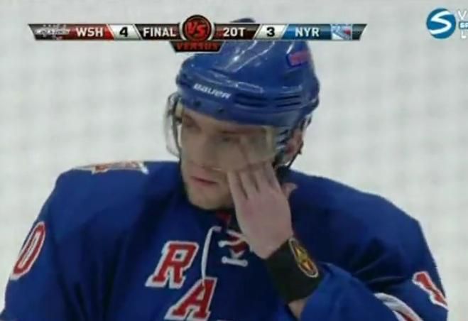 New York Rangers podľahli na domácom ľade Washingtonu Capitals 3:4 po predĺžení a v sérii tak "jazdci" prehrávajú už 1:3. V náročnom zápase rozhodlo až druhé predĺženie, v ktorom vsietil víťazný gól ľavý krídelník Washingtonu a po zápase aj tretia "hviezda" Jason Chimera. Brankár Washingtonu Michael Neuvirth čelil 39 strelám a inkasoval 3 góly. Brankár NY Rangers Henrik Lundqvist čelil 53 strelám a inkasoval 4 góly. Prvou hviezdou sa stal útočník hostí Marcus Johansson, ktorý v zápase vsietil dva góly.