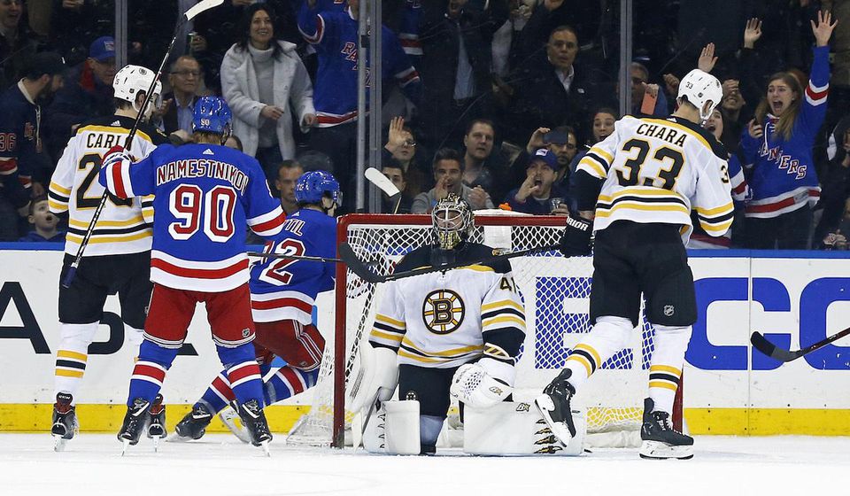 Rangers zdolali Bruins v deviatom z ostatných desiatich duelov, pričom v tom stredajšom museli otáčať stav merania síl z 1:3 po II. tretine. Góly Bruins strelili Danton Heinen, David Pastrňák a Patrice Bergeron.
