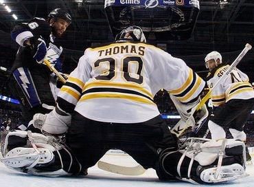 góly: 1.T.Purcell (V.Lecavalier), 28.Martin St Louis (V.Lecavalier,S.Stamkos), 34.T.Purcell (S.Downie, B.Clark), 41 .S.Stamkos (E.Brewer, Martin St Louis), 51.Martin St Louis (S.Downie, S.Stamkos) - 8.M.Lučič (N.Horton, J.Boychuk), 17.D.Krejči (D.Paille), 50.D.Krejči (N.Horton, T.Kaberle), 54. D.Krejči (M.Lučič, T.Kaberle) Vylúčení: 5:5 na 2 min, presilovky: 3:1, oslabenia: 0:0. Strely na bránku: 26:20, brankári: Roloson - Thomas. Diváci: 21 426.