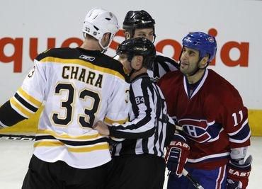 Kapitán "medveďov" z Bostonu Zdeno Chára v závere druhej tretiny predčasne opustil ľadovú plochu Montrealu za "zvalcovanie" útočníka "Canadiens" Maxa Paciorettyho- toho museli odniesť na nosidlách. "Nešťastie sa prihodí rýchlo. Podobne, rýchlo robíte aj rozhodnutia. Nanešťastie Chára urobil zlé rozhodnutie. Myslím, že vedel, že na danom mieste začína stredová výplň plexiskla. Dúfajme, že podobnú vec už neurobí. Všetci veríme, že Max bude v poriadku," nechal sa počuť dvojgólový strelec večera nováčik Lars Eller. Montreal Canadiens pred začiatkom tretej tretiny oznámili, že Pacioretty bol pri vedomí, dokázal pohybovať rukami aj nohami a bol prevezený na ďalšie testy. Zranené ľavé krídlo Montrealu bolo po zápase vyhlásené za tretiu hviezdu zápasu.