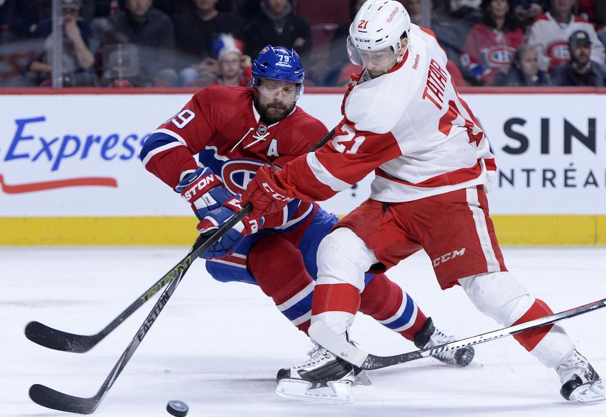 FOTO: Tomáš Tatar v súboji s Andrejom Markovom z Montrealu.