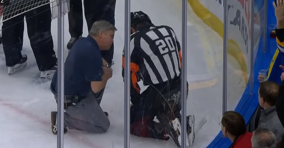 Tim Peel po zásahu pukom. Zdroj: Youtube / SPORTSNET