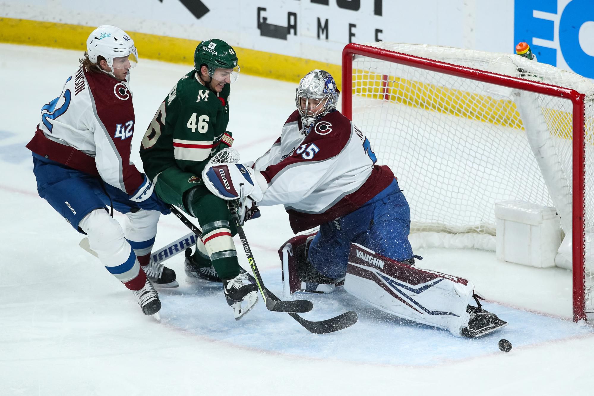 Góly: 39. Kaprizov (Hartman, Zuccarello), 55. Hartman (Zuccarello, Dumba), 61. K. Fiala (Zuccarello, J. Eriksson Ek) – 47. Kadri (Compher, D. Toews), 51. Rantanen (Burakovsky, Kadri)