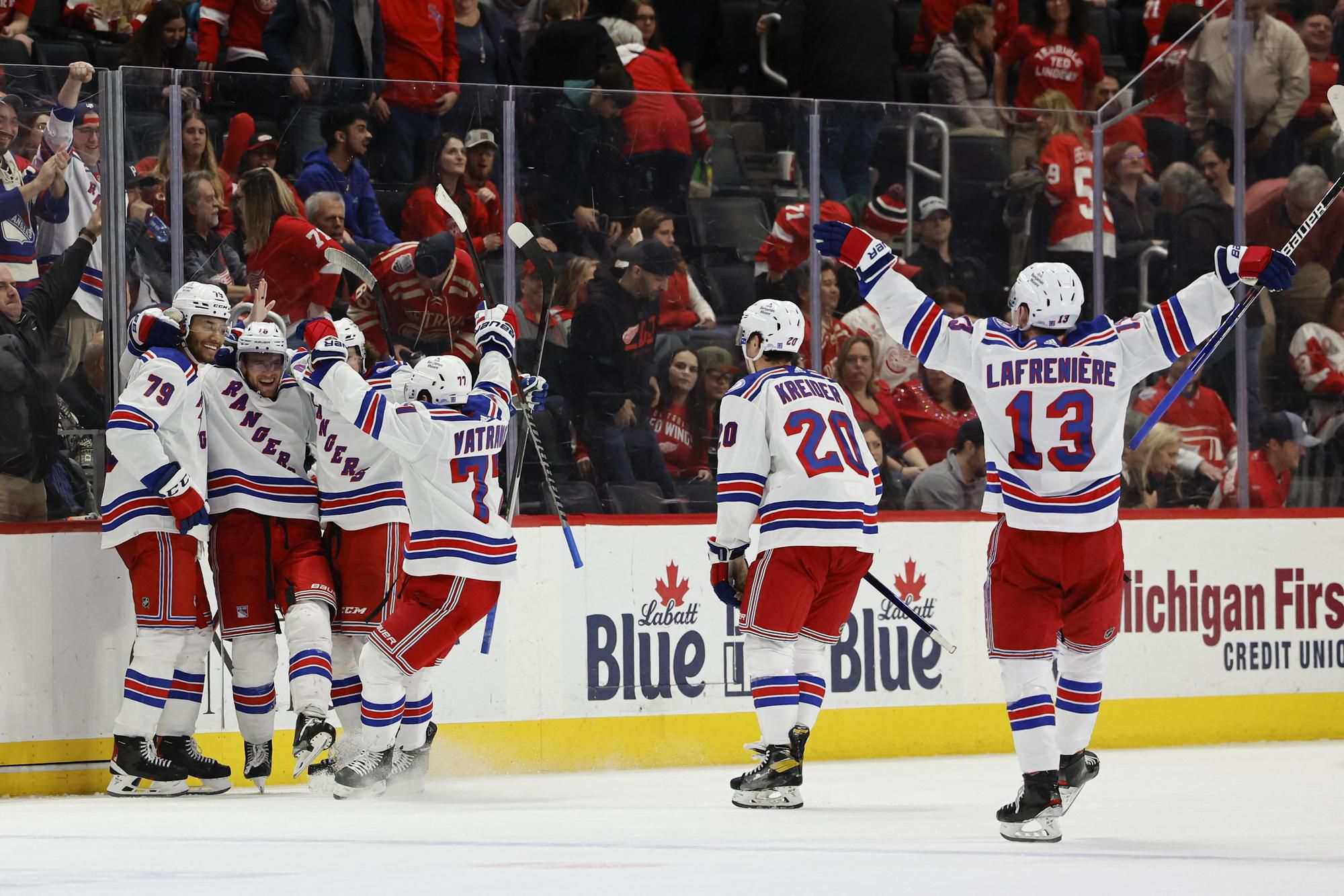 New York Rangers zvíťazili na ľade Detroitu 5:4 po predĺžení a uspeli štvrtýkrát v sérii. Vo Východnej konferencii majú tretiu najlepšiu bilanciu s náskokom troch bodov na Floridu, ktorá má o dva zápasy menej. Rozhodujúci gól dal v 94. sekunde predĺženia Andrew Copp. Chris Kreider si v zápase pripísal 24. gól v presilovke, čo je najviac v lige v aktuálnej sezóne.