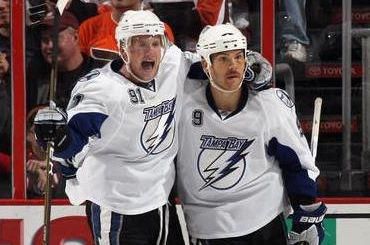 Góly: 5. Nodl (Žerdev, M. Richards), 6. Žerdev (Carle, M. Richards), 10. Carter (O'Donnell, Giroux), 16. Hartnell (Coburn, Carle), 19. Briere (Hartnell, O'Donnell), 25. Žerdev (Powe, Pronger), 30. Andrej MESZÁROŠ (van Riemsdyk, Betts) - 9. Stamkos (St. Louis, Ellis), 9. Hall (Hedman, Bergenheim), 14. Malone (St. Louis, Stamkos), 19. Clark (Moore, Hedman), 25. Stamkos (St. Louis, Lundin), 30. Downie (St. Louis, Stamkos), 39. Stamkos (Purcell, St. Louis), 46. Thompson (Tyrell, Bergenheim)Brankári: Bobrovsky (21. Boucher) - Ellis (16. Smith), strely na bránku: 32:33, diváci: 19.672
