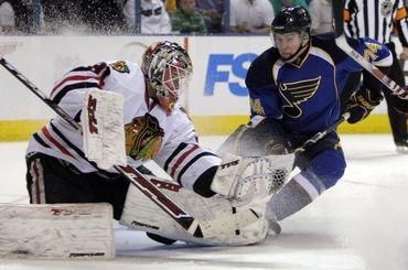 Domáci Alex Steen sa stal prvou hviezdou zápasu medzi St. Louis s Chicagom, keď dva z jeho siedmich streleckých pokusov musel brankár hostí Niemi vyťahovať spoza bránkovej čiary. Na opačnej strane sa jedným presným zásahom prezentoval aj Slovák Marián Hossa, keď zvyšoval skóre na 2:1 z pohľadu hostí. To však bol zároveň aj posledný gól "jastrabov". Potom do čierneho triafali už len domáci. Hossa mohol skórovať druhý raz, keď sa v treťom dejstve dokázal perfektne uvoľniť medzi dvojicou brániacich hráčov, ale gólmana domácich Chrisa Masona neprekonal. Mason sa stal druhou hviezdou zápasu, keď vychytal 32 striel smerujúcich do priestoru jeho brány. Tomáš Kopecký v zostave Chicaga chýbal.