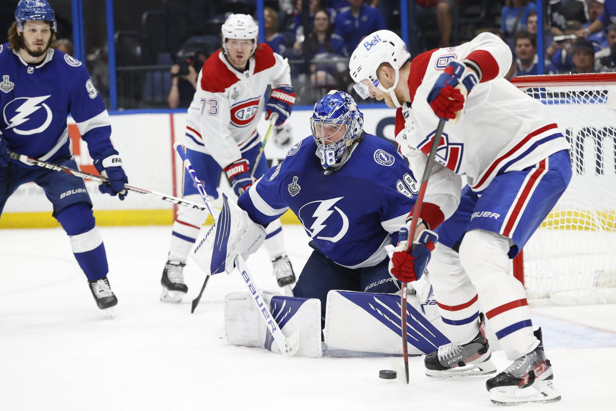 Hostia boli aktívnejší a nebezpečnejší, ale nevedeli nájsť recept na Vasilevského. Ruský brankár podržal „blesky“ aj v 16. minúte, keď ho neprekonal Tyler Toffoli. V prvej tretine gól nepadol, hostia vyhrali na strely 13:6. Tampa otvorila skóre v 27. minúte, keď si Cirelli vymenil pozíciu s obrancom Janom Ruttom a jeho strela švihom od modrej čiary zapadla pod vyrážačku Pricea. O tri minúty neskôr však Canadiens vyrovnali, keď potrestali vylúčenie Sergačeva.