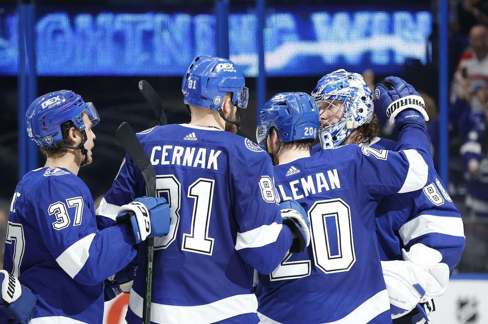 Tampa Bay: Vasilevskij - Rutta, Hedman, ČERNÁK, McDonagh, Savard, Sergačov - Kučerov, Point, Palát - Stamkos, Cirelli, Johnson - Coleman, Gourde, Goodrow - Joseph, Colton, Maroon. Tréner: J. Cooper