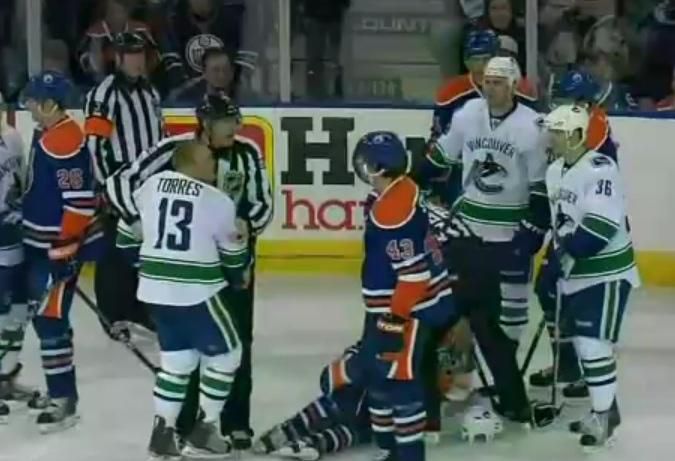 Torres pre trest vynechá prvé dve stretnutia svojho klubu v play off, ktoré štartuje na budúci týždeň. Incident sa odohral v tretej tretine utorňajšieho zápasu medzi Edmontonom Oliers a Vancouverom Canucks (2:0). Torres dostal za zákrok trest do konca stretnutia, Eberle vyviazol bez zranenia. Informovala agentúra Reuters.