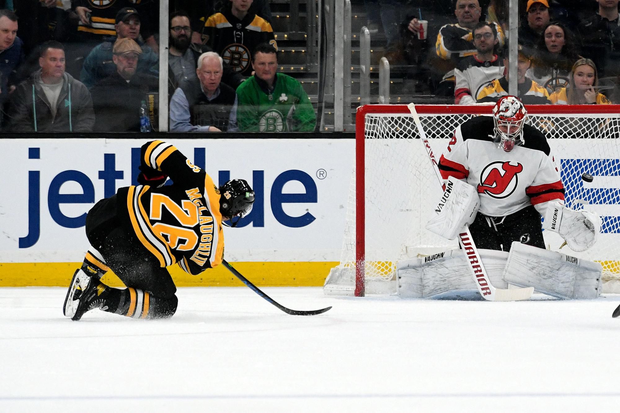 Boston doma rozstrieľal New Jersey 8:1. V drese hostí odohral slovenský útočník Tomáš Tatar 16:14 minút a pripísal si štyri strely na bránku a dve mínusky. Boston strelil šesť gólov v druhej tretine, pričom sa presadil aj debutant Marc McLaughlin. Dvadsaťdvaročný útočník zakončil prečíslenie dvoch proti jednému