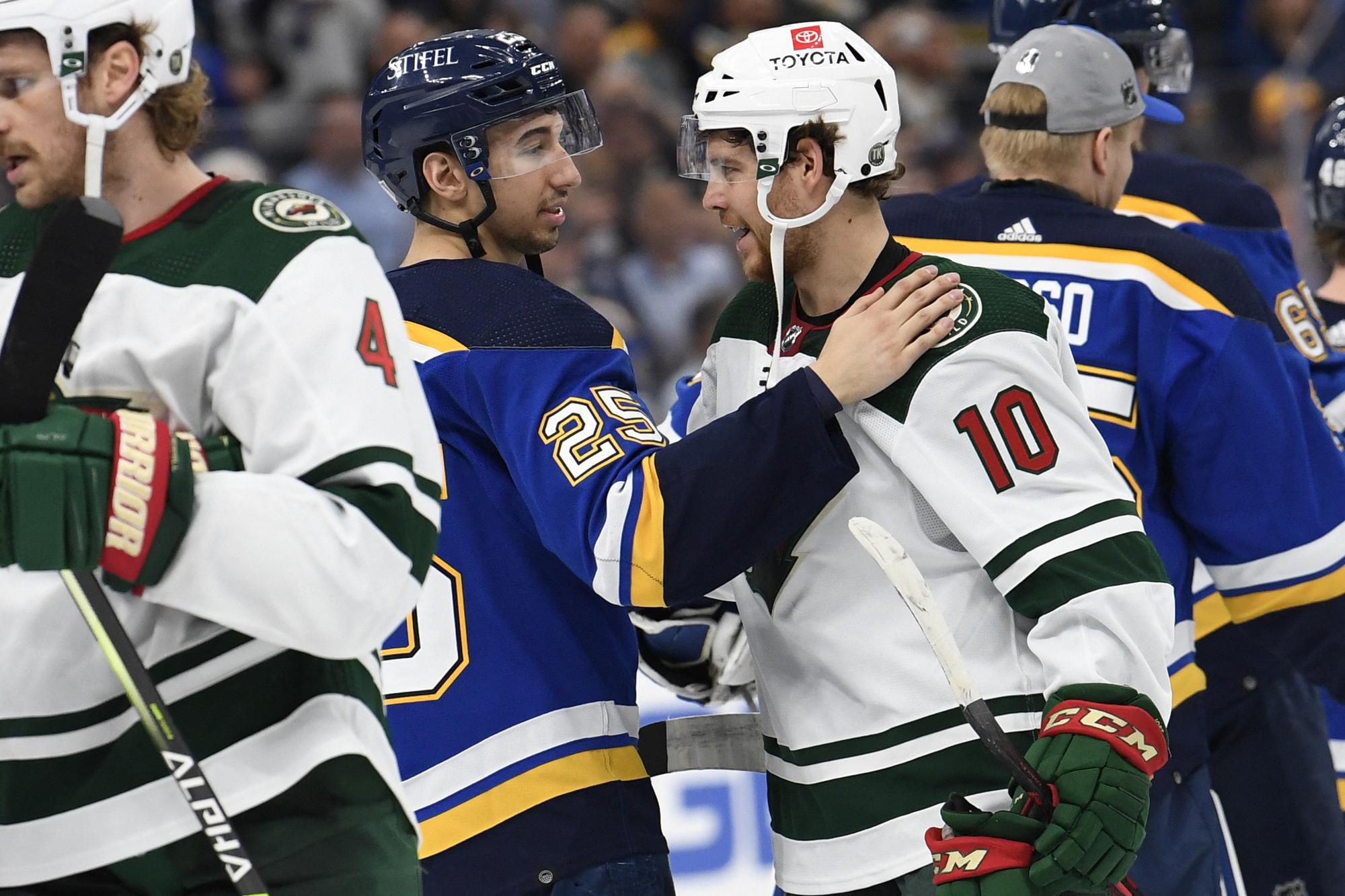„Vyšlo nám úvodné dejstvo a zvládli sme ich tlak. Vyštartovali na nás tvrdo a hrali zúfalo. Myslím, že sme to ustáli a opätovali v druhej tretine,“ uviedol po dueli Binnington. Menej sa darilo jeho náprotivku v bránke Minnesoty - pre Cama Talbota to bol prvý štart v tohtoročnej play-off, pričom v predchádzajúcich šiesitch zápasoch inkasoval v priemere 5,06 gólu na zápas s úspešnosťou zákrokov 82,5 percenta.
