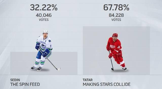 Čo je ale najpodstatnejšie, fanúšikom sa najviac páčila akcia mladého Slováka, ktorý svojho „soka“ porazil s veľkým prehľadom. Hlasujúci rozhodli – Henrik Sedin dostal približne 40-tisíc hlasov a Tomáš Tatar vyše 84-tisíc hlasov !