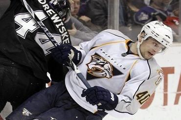 Góly : 23. Clifford (Sturm, Kopitar), 28. Stoll (Smyth, Kopitar) - 29. Colin Wilson (Suter, S. Kosticyn), 31. SVATOŠ (Colin Wilson, S. Weber), 35. Hornqvist (Colin Wilson, Suter), 49. S. Kosticyn (Klein, S. O'Brien), 56. Hornqvist (S. Weber, S. Kosticyn).Vylúčení : 3:2 na 2 min, navyše : Simmonds - Bouillon (obaja 5 min za bitku), presilovky : 1:2, oslabenia : 0:0. Strely na bránku : 26:28. Brankári : J. Bernier - Lindbäck. Diváci : 17 823.