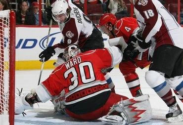 Z víťazstva po samostatných nájazdoch s výsledkom 2:1 sa mohol tešiť gólman Caroliny Cam Ward, ktorý kryl 34 z 35 striel a zaslúžene sa tak stal aj prvou hviezdou zápasu súboja proti Coloradu Avalanche.