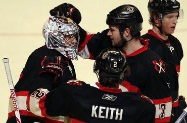 Ak sa Blackhawks aj dopustia chybičky, vzadu všetko napraví Corey Crawford . Ligový nováčik svojimi výkonmi vytlačil z bránkoviska skúseného Martyho Turca a v posledných dvoch zápasoch si udržal čisté konto. V dueli s Avalanche potreboval k shutoutu 24 zákrokov. "Dve nuly za sebou ma tešia, ale iba víťazstvá sú tie štatistiky, ktoré sa naozaj počítajú," podotkol Crawford. V tíme "jastrabov" nastúpila aj dvojica slovenských útočníkov, Marián Hossa sa v deň svojich 32. narodenín výraznejšie nepresadil, keď si pripísal len tri neúspešné strely na bránku, rovnako ako Tomáš Kopecký , ktorému okrem jedného streleckého pokusu pribudli na konto aj dve minúty za hákovanie.