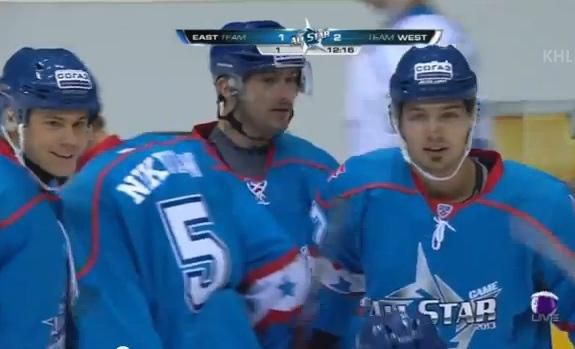 V oboch mužstvách mal zastúpenie aj slovenský hokej, v tíme Východu sa predstavil útočník Avangardu Omsk Tomáš Záborský, ktorý si na svoje konto pripísal tri body (1+2), v zostave Západu figuroval od 31. minúty brankár CSKA Moskva Rastislav Staňa.Pred 7500 divákmi bolo stretnutie, v ktorom proti sebe po prvý raz nastúpili výbery konferencií a nie tímy nesúce mená hviezdnych hráčov, bohaté na góly, už v prvej tretine ich padlo deväť. Lepšie začali hráči Západu, ktorí sa v 5. minúte ujali vedenia 2:0, rovnako rýchla odpoveď ale prišla v 8. minúte zo strany Východu (2:2). Potom prišla gólová smršť Východu, ktorý sa ujal vedenia 6:2, posledné slovo v úvodnej časti však mal Širokov, ktorý upravil na 6:3. Ešte o jeden gól viac padlo v prostrednej časti zápasu a znova za kratší koniec ťahali hráči Západu. Po góle v úvodnej tretine si Tomáš Záborský pripísal v tejto časti hry na svoje konto jednu asistenciu. V záverečnej tretine padlo na každej strane po päť gólov.