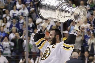Pohár je v správnych rukách! Teda to si aspoň myslí slovenský hokejový a kapitán Bostonu Bruins, čerstvého držiteľa najslávnejšej hokejovej trofeje, Zdeno Chára (34).