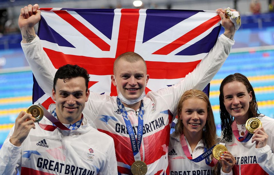 Štvorica plavcov Veľkej Británie Kathleen Dawsonová, Adam Peaty, James Guy a Anna Hopkinová triumfovala v olympijskej premiére miešanej polohovkárskej štafety na 4 x 100 m.