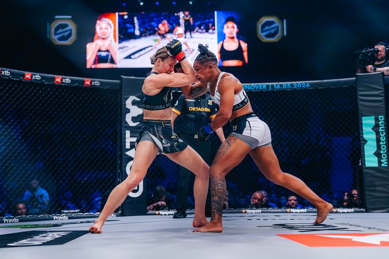 - 5/16Oktagon 87: Lucia Szabová - Leidiane Fernandesová. Zdroj: Oktagon