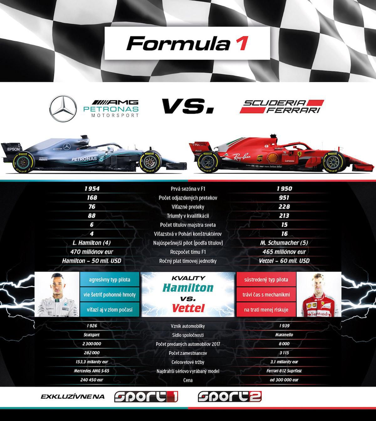 Ročne sa do obehu dostane len 8-tisíc Ferrari. Pri oboch značkách ale musíte siahnuť hlboko do vrecka. Najdrahší sériovo vyrábaný model mercedesu stojí cez 240.000 eur, Ferrari viete mať "už" za cca 300.000 eur. Do novej sezóny lepšie odštartovalo Ferrari, Vettel v Austrálii triumfoval, Räikkönen bol tretí. Bude Mercedes kontrovať už na víkendovej Veľkej cene Bahrajnu? Sledujte naživo tréningy na Sport1 a samotné preteky v nedeľu od 17.00 h na Sport2.