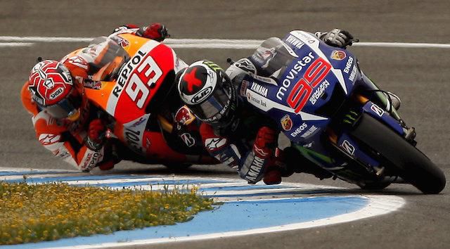Výsledky - MotoGP:1. Jorge Lorenzo (Šp./Yamaha) 44:57,246 min , 2. Marc Marquez (Šp./Honda) 45:02,822 , 3. Valentino Rossi (Tal./Yamaha) 45:08,832 , 4. Cal Crutchlow (V.Brit./Honda) 45:19,973 , 5. Pol Espargaro (Šp./Yamaha) 45:23,866, 6 . Andrea Iannone (Tal./Ducati) 45:24,267