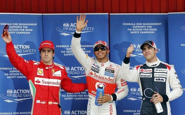 Jazdec tímu McLaren zajazdil v sobotňajšej kvalifikácii najrýchlejší čas a po tretí raz v sezóne odštartuje z prvého miesta. Veľkým prekvapením je druhé miesto Pastora Maldonada (Williams), tretí skončil na Circuit de Catalunya domáci matador Fernando Alonso (Ferrari). Pre McLaren je to už jubilejná 150. pole position v tímových dejinách.