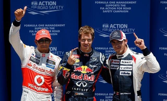 Úradujúci majster sveta má šancu na mestskom okruhu vo Valencii obhájiť vlaňajšie prvenstvo. Na trati v Španielsku sa len veľmi ťažko predbieha. S Vettelom sa do prvého radu postaví aj líder hodnotenia šampionátu Brit Lewis Hamilton s McLarenom. Druhý rad obsadia Venezuelčan Pastor Maldonado s Williamsom a Francúz Romain Grosjean s Lotusom. V treťom rade budú stať Fín Kimmi Räikkönen s Lotusom a Nemec Nico Rosberg z Mercedesu. Prekvapením sobotňajšej kvalifikácie vo Valencii bol neúspech Ferrari, ani jeden monopost tejto značky nepostúpil do tretej časti a Fernando Alonso napokon skončil jedenásty a Felipe Massa o dve priečky nižšie. Do druhej časti kvalifikácie sa prekvapujúco nedostal víťaz Veľkej ceny Monaka Mark Webber s Red Bullom, ktorý za 20 minút úvodnej časti nedokázal ani na mäkkých pneumatikách dosiahnuť lepší ako 19. čas. V kvalifikácii neštartoval nemecký pilot tímu Marussia Timo Glock, ktorý má od štvrtka žalúdočné problémy. O jeho štarte v nedeľňajších pretekoch sa rozhodne pred ich začiatkom.