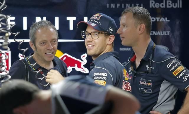 Prekonal tým svoje vlastné najrýchlejšie kolo na okruhu Buddh International Circuit z roku 2011. Víťaz ostatných piatich pretekov šampionátu odsunul na druhé miesto svojho tímového kolegu z Red Bullu Marka Webbera, ktorý zaostal o 188 tisícin sekundy. Tretí skončil Nico Rosberg z Mercedesu.Vettelovi stačí v nedeľňajších pretekoch skončiť do piateho miesta, aby oslavoval štvrtý titul majstra sveta za sebou, čo sa v doterajšej histórii F1 podarilo iba jeho nemeckému krajanovi Michaelovi Schumacherovi a Juanovi Manuelovi Fangiovi z Argentíny.VC Indie - piatok - I. meraný tréning:1. Sebastian Vettel (Nem.) Red Bull-Renault 1:26,683 min 2. Mark Webber (Aus.) Red Bull-Renault + 0,188 s 3. Nico Rosberg (Nem.) Mercedes + 0,216 4. Romain Grosjean (Fr.) Lotus-Renault + 0,307 5. Lewis Hamilton (V. Brit.) Mercedes +0,544 6. Jenson Button (V. Brit.) McLaren-Mercedes + 0,6527. Sergio Perez (Mex.) McLaren-Mercedes +0.7338. Felipe Massa (Bra.) Ferrari +1.0099. Nico Hülkenberg (Nem.) Sauber-Ferrari +1.08710. Valtteri Bottas (Fín.) Williams-Renault +1.11711. Jean-Eric Vergne (Fra.) Toro Rosso-Ferrari +1.35212. Fernando Alonso (Špa.) Ferrari +1.53113. Daniel Ricciardo (Aus.) Toro Rosso-Ferrari +1.65314. Pastor Maldonado (Ven.) Williams-Renault +1.65915. Adrian Sutil (Nem.) Force India-Mercedes +1.78516. Esteban Gutierrez (Mex.) Sauber-Ferrari +1.85517. Kimi Räikkönen (Fín.) Lotus-Renault +2.04718. James Calado (V. Brit.) Force India-Mercedes +2.51419. Giedgo van der Garde (Hol.) Caterham-Renault +2.73020. Jules Bianchi (Fra.) Marussia-Cosworth +2.87721. Charles Pic (Fra.) Caterham-Renault +3.34322. Max Chilton (V. Brit.) Marussia-Cosworth +3.788