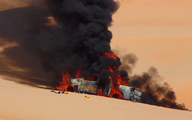 Obaja mali štastie v nešťastí, kedy sa im podarilo dostať sa z horiaceho auta von. Najúspešnejšia slovenská posádka v cross-country rally mala najskôr menšie problémy už pri rannom opúšťaní bivaku. Následne sa po asi 150 kilometrov dlhej prejazdovej časti postavili na štart rýchostnej skúšky v dunovom poli neďaleko mestečka Mezaira'a. Už po siedmych kilometroch však ich auto pohltili plamene.