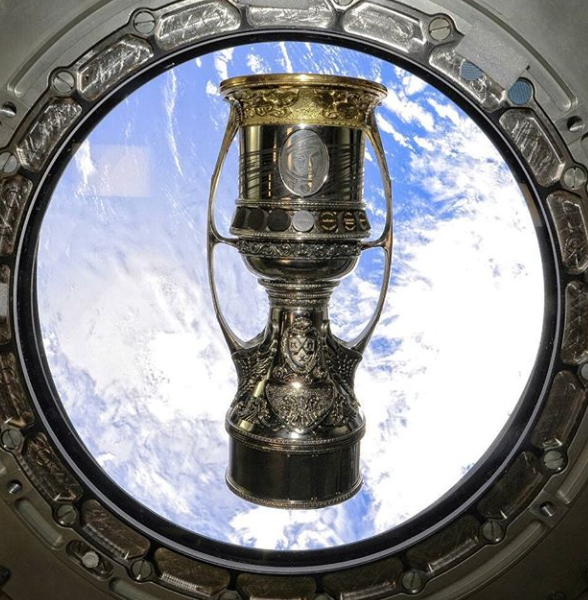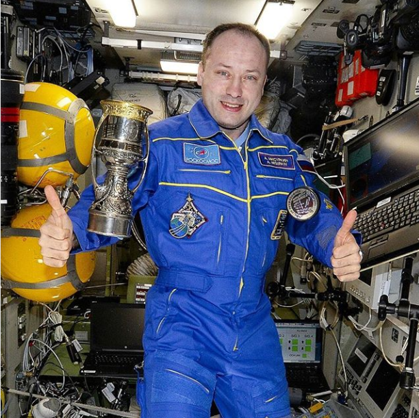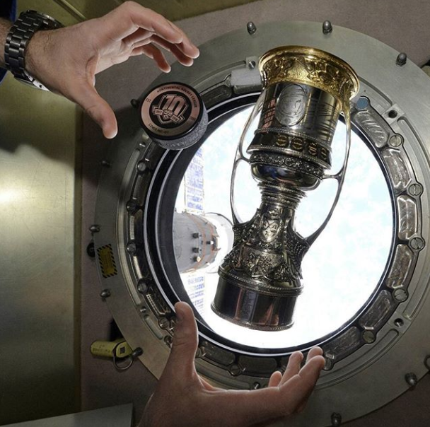 Ruská vesmírna korporácia Roscosmos vyniesla rukami kozmonauta Alexandra Misurkina na orbit zmenšenú kópiu trofeje pre víťaza KHL. Gagarinov pohár si tak mohol zalietať v beztiažovom stave.