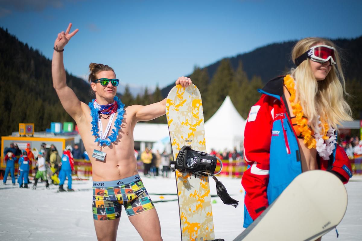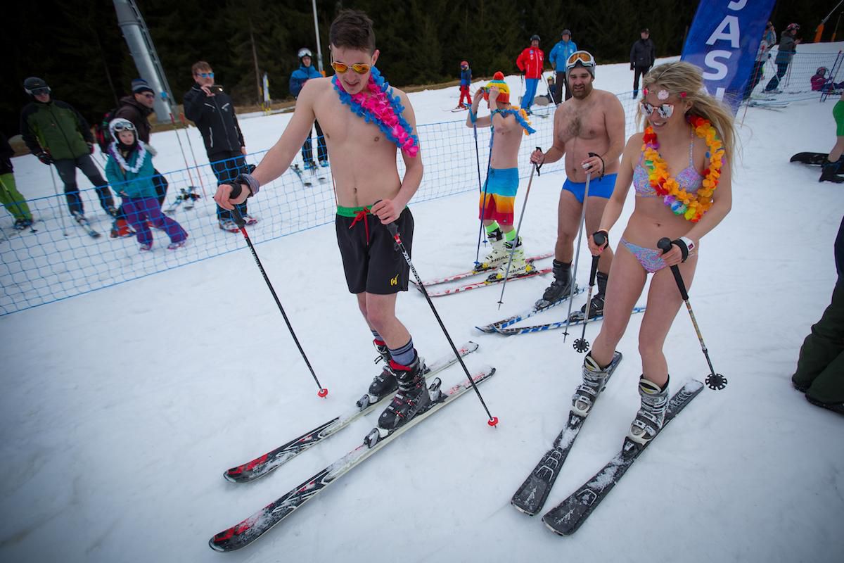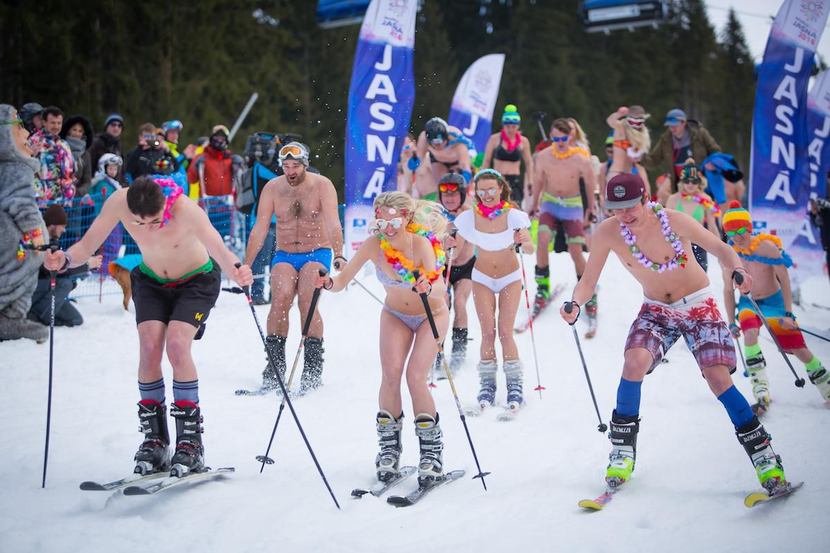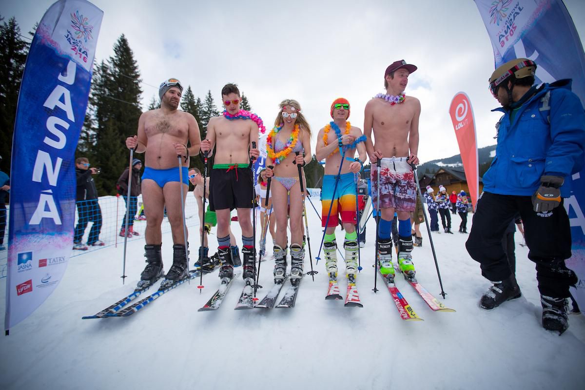 Foto: Odvážlivci na snehu, lyžovali sa oblečení iba do plaviek