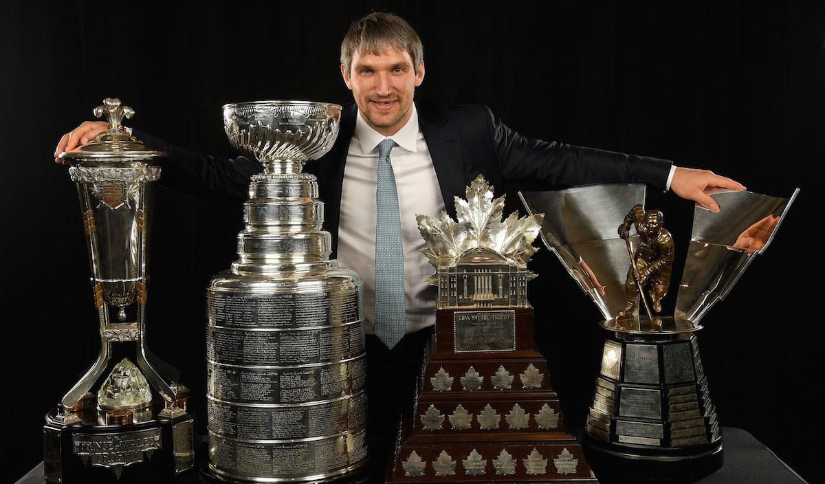 Alexander Ovečkin bol opäť hlavnou hviezdou večera. Tentokrát však už nie na ľade, ale počas udeľovania idividuálnych cien NHL. Ruský útočník napokon zakončil galavečer s troma trofejami a aj sa s nimi ddfotil. No medzi nimi stála aj tá najcennejšia, Stanley Cup.