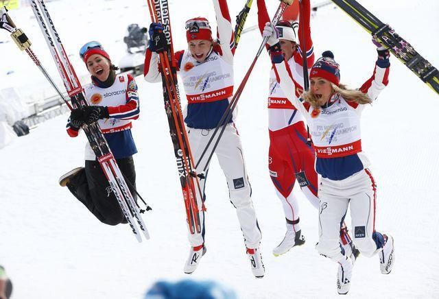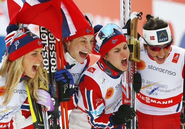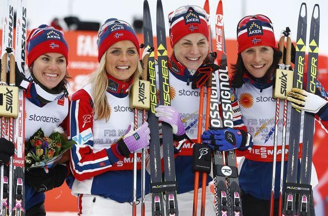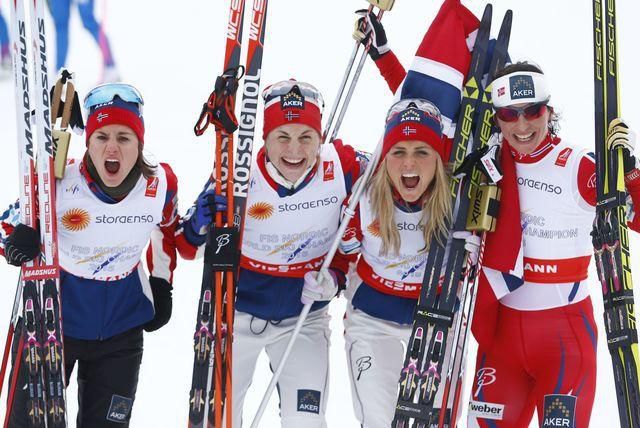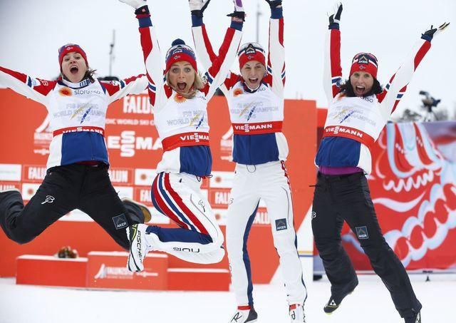 Nórky Heidi Wengová,Therese Johaugová, Astrid Jacobsenová a Marit Björgenová, hviezdili v piatok v bežeckej štafete na 4x5 km a v rámci MS v severských disciplín vo Falune vybojovali zlato.