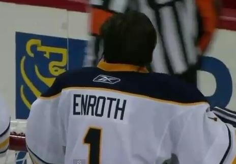 Zaujímavý zákrok predviedol pri spomienke na "old-schoolové" časy náhradný brankár Buffala Jhonas Enroth.