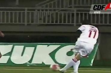 Argentínsky futbalista Matias Urbano zakončil krásnu akciu svojho mužstva Unionu La Calera netradičným spôsobom, po ktorom našťastie lopta skončil v sieti. Ak by sa jeho pokus nevydaril, vyšiel by podobne na smiech, ako posledne pri svojej "zadovke" futbalista Manchestru City Mario Balotelli...