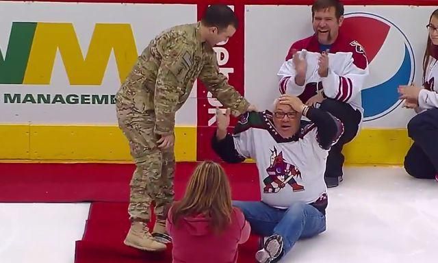 Posledný duel Arizona Coyotes bol pre jedného z fanúšikov veľmi emotívny. Nie však kvôli hokejistom na ľade. Eitan Urman prišiel k stredovému kruhu a pripravoval sa vhodiť symbolické buly. Zrazu sa k nemu blížil mladý muž odetý vo vojenskej uniforme. Bol to jeho syn Dan Urman, ktorý sa práve vrátil z misie v Afganistane.