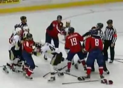 Vzájomný stret Alexandra Ovečkina (Washington Capitals ) s protihráčom Mattom Cookeom (Pittsburgh Penguins) "za nepríjemné koleno" vyústil v hromadnú bitku.