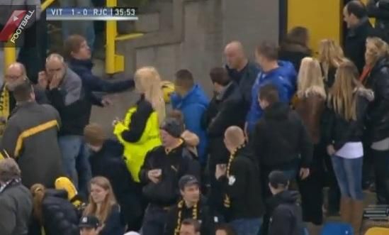 Hovorí sa, že škodoradosť je najväčšia radosť. A bude to zrejme pravda...Istý holandský fanúšik sa v súboji druhej holandskej ligy Vitesse - Roda, pokúsil odkopnúť loptu späť na hraciu plochu, no skončil na zemi a vylial si ešte aj pivo...