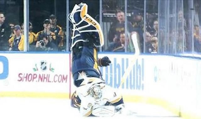 Aj brankári vedia lietať. Lepšie povedané, vedia mlynské kolo priamo na ľade. Niečo podobné sa prihodilo brankárovi Nashville Predators Carterovi Huttonovi.