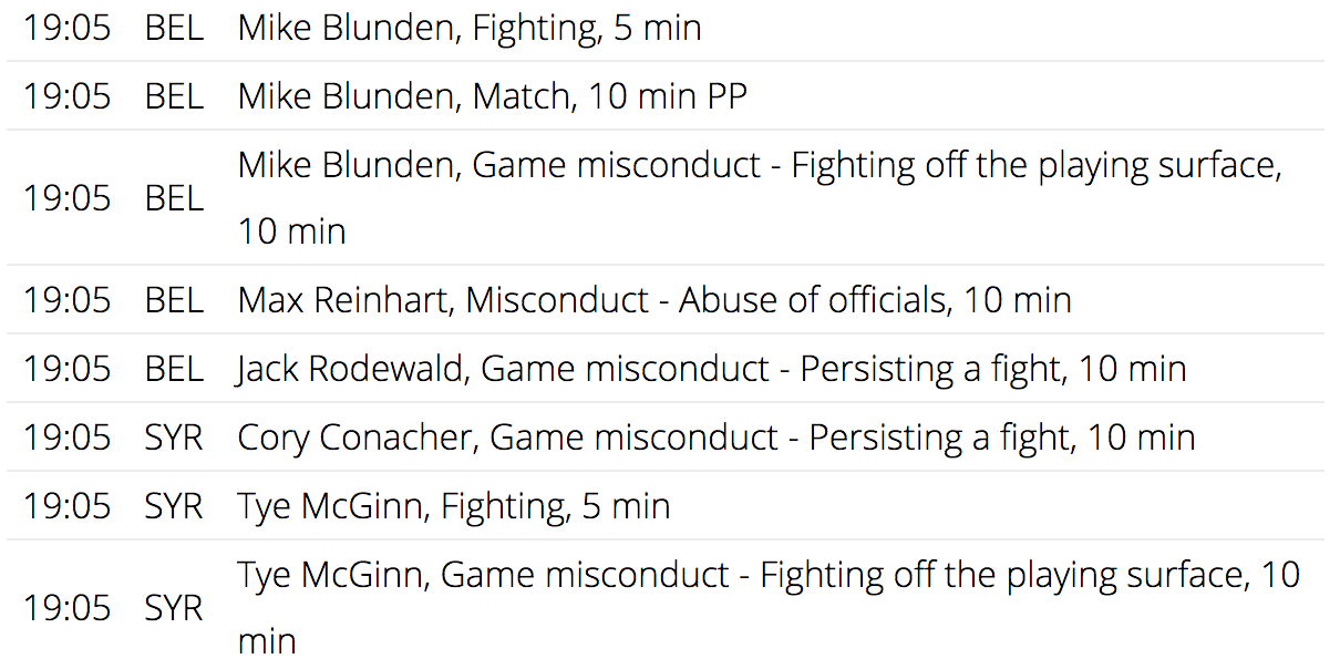 V závere stretnutia AHL sa strhla poriadna mela, do bitky sa zapojili aj hráči lavičky. Rozhodcovia udelili piatim hráčom až 116 minút.