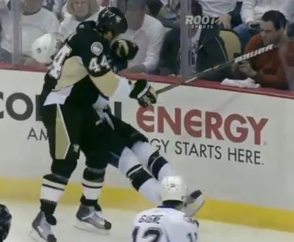 Brooks Orpik s Pittsburghu Penguins takýmto razantným štýlom privítal kanoniera Tampa Bay Lightning Stevena Stamkosa v play-off. Snáď sa nezľakne...