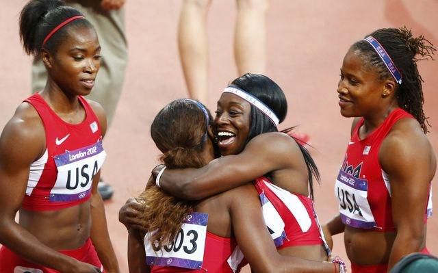 Američanky získali na OH v Londýne zlatú medailu v štafete na 4x100m v novom svetovom rekorde 40,82 s. Strieborné skončili reprezentantky Jamajky, ktoré si pripísali národný rekord 41,41 s, a bronz putuje na Ukrajinu (42,04 s).
