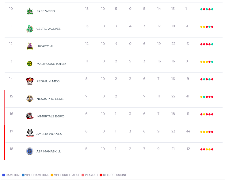 Tabuľka eSerie A Pro 11x11 po 10. kole_