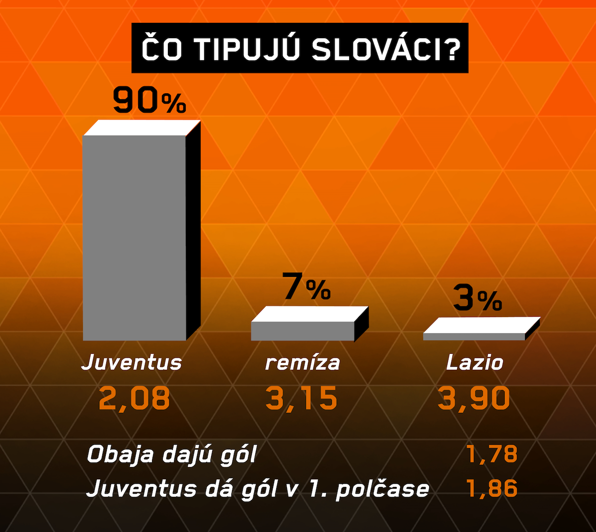 Lazio by tak mohlo byť v istej výhode. A keď zoberieme do úvahy aj formu rímskeho celku a k tomu fakt, že v decembrovom ligovom zápase doma zdolal obhajcu titulu 3:1, je nesporné, že pôjde o zaujímavý súboj. Juventus tak narazí na rivala, ktorý ho ako jediný v tejto sezóne dokázal zdolať v Serii A. Hoci má taliansky šampión kvalitnejší káder, strelecky v lige nedominuje tak, ako práve rímsky tím (Lazio strelilo 38 gólov v 16-tich zápasoch). Jeho kapitán Ciro Immobile nastrieľal v lige už 17 gólov, na druhej strane Cristiano Ronaldo dal o sedem menej.
