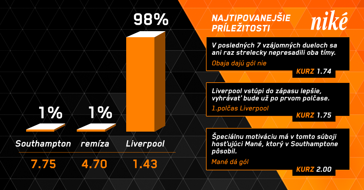 Pre oba tímy je to mimoriadne dôležitý duel. Southampton potrebuje body ako soľ v boji o záchranu, podobne, zaváhanie si v naháňačke o majstrovský titul nemôže dovoliť ani Liverpool.