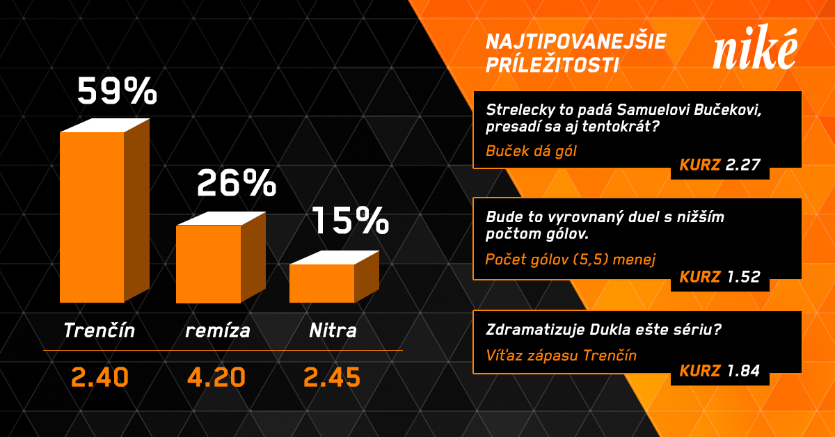 Trenčín dnes bude odvracať nitriansky mečbal. Aj keď miernym favoritom je v tomto súboji pre mňa Nitra, tak očakávam veľmi vyrovnaný duel, o ktorého osude by sa mohlo pokojne rozhodovať až v predĺžení.