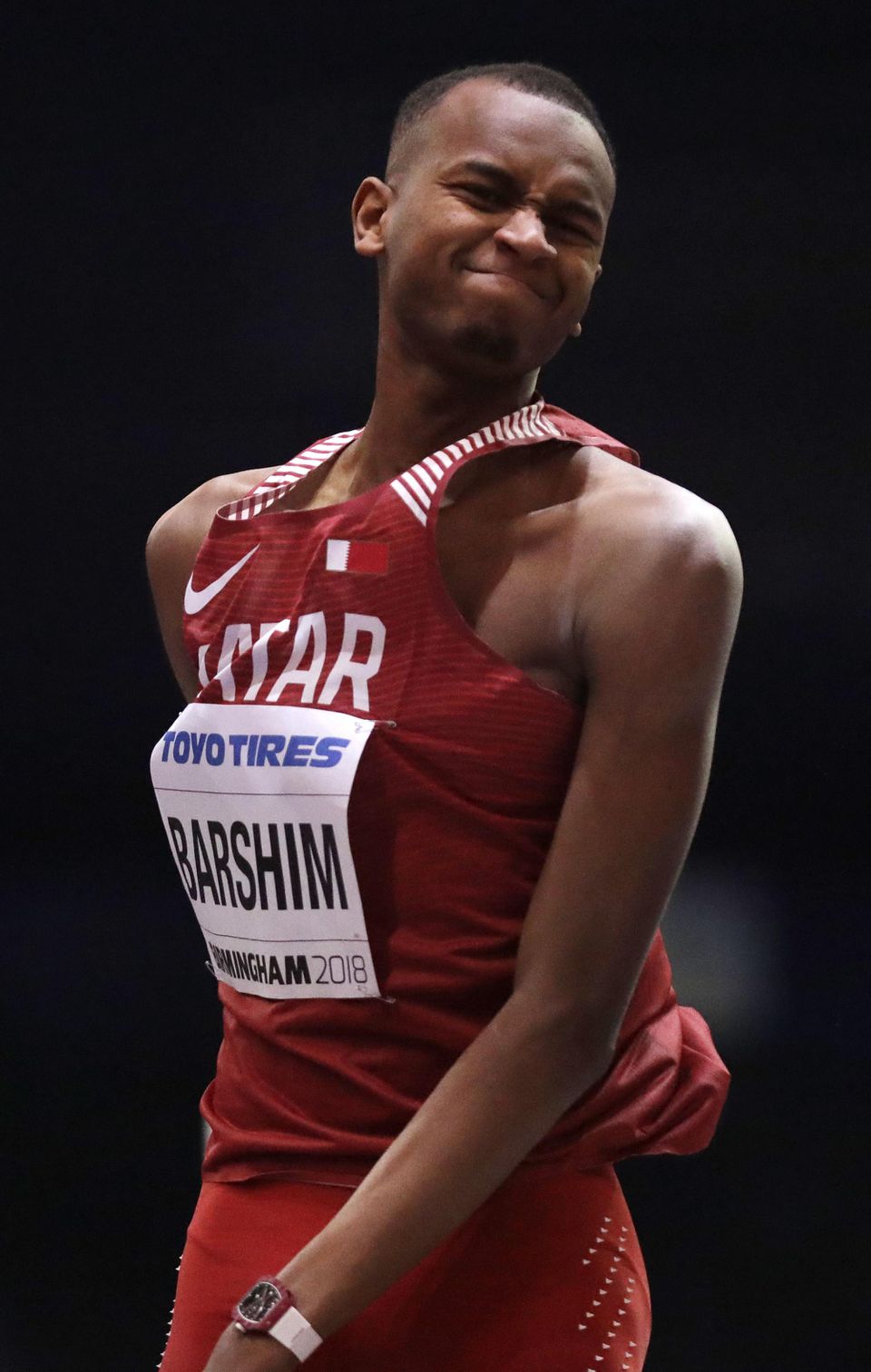 Dvadsaťsedemročný Katarčan sa zranil pri poslednom pokuse o 246 centimetrov, na konte mal svetový výkon roka 240 cm. Kubánec Javier Sotomayor drží svetový rekord 245 cm od roku 1993.